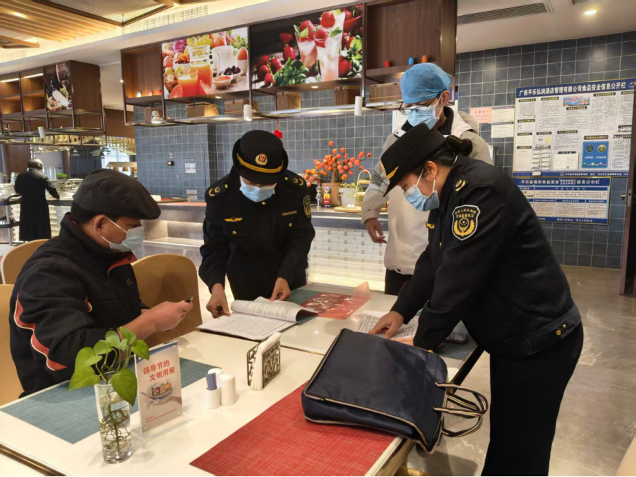 2月6日至9日,广西壮族自治区平乐县召开第十七届人平易近代表大会第六次会议和中国人平易近协商会议第十一届平乐县委员会第七次会议。期间,平乐县市场监管局细心组织、严酷监管,会前,该局成立专项保障工做带领小组,制定工做方案及应急预案。组织力量对承担欢迎使命的2家定点单元开展全面评估取现场查抄。环绕许可天分、从业人员健康天分、食物采购储存、加工厂所卫生、餐饮具清洗消毒等环节严酷审查。对查抄中发觉的问题现患,